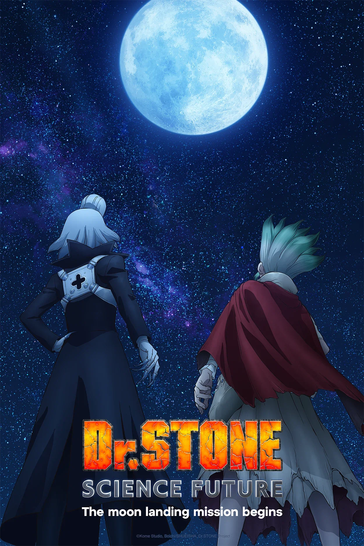 After Tsukasa’s defeat, the Kingdom of Science sets its sights on Why-Man on the moon. Senku and his companions head to the USA for urgently needed raw materials.