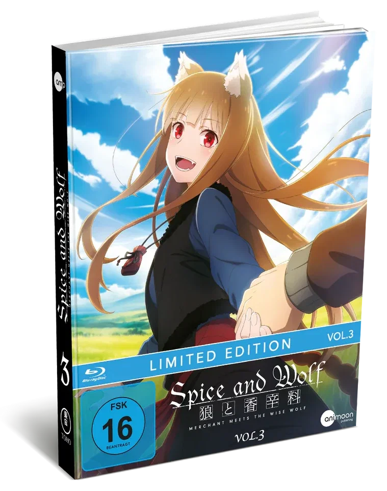 In a few weeks, AniMoon Publishing will begin the disc release of the new anime adaptation of »Spice and Wolf«. In keeping with this, the design of the collection slipcase and the volumes were revealed. We summarize.